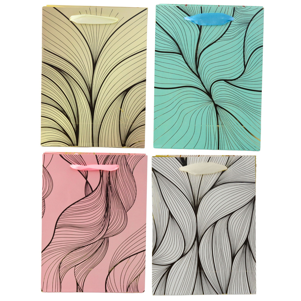 - This elegant gift bag with a modern design is a perfect choice for any occasion – from birthdays and anniversaries to weddings and social gatherings. Made of high-quality decorative cardboard, the bag features a wavy, gold pattern.