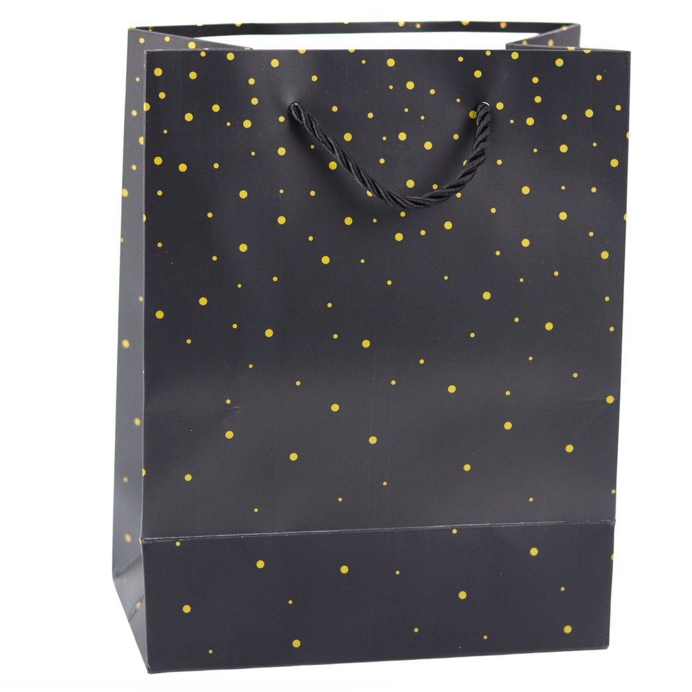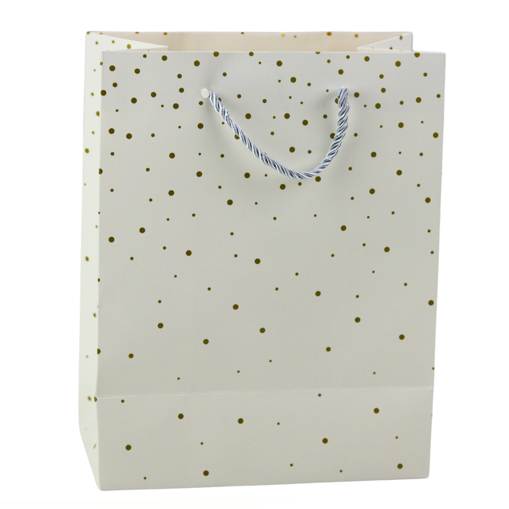 - The elegant gift bag with a subtle pattern of gold dots is a great way to wrap a gift in a stylish and sophisticated way. It is ideal for various occasions, such as birthdays, anniversaries, holidays or family gatherings.