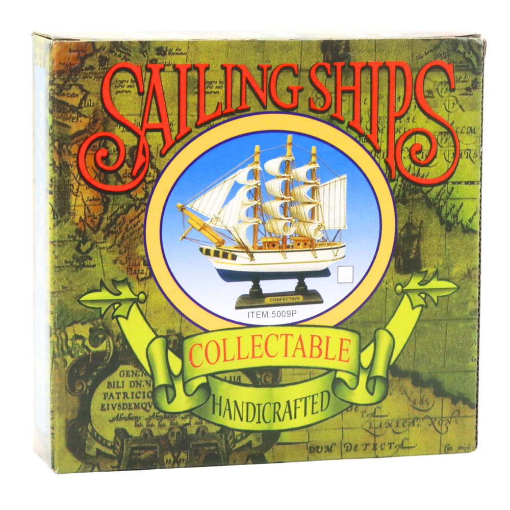 The model is crafted from wood and hand-finished, with attention to proportions, deck details, and rigging symmetry. The sturdy base with the "CONFECTION" plaque allows for easy display on a shelf, in a display case, or on a desk. Its compact size complements any interior, adding a maritime atmosphere and an element of adventure. It is perfect for collectors, fans of pirate legends, and vintage or nautical décor.