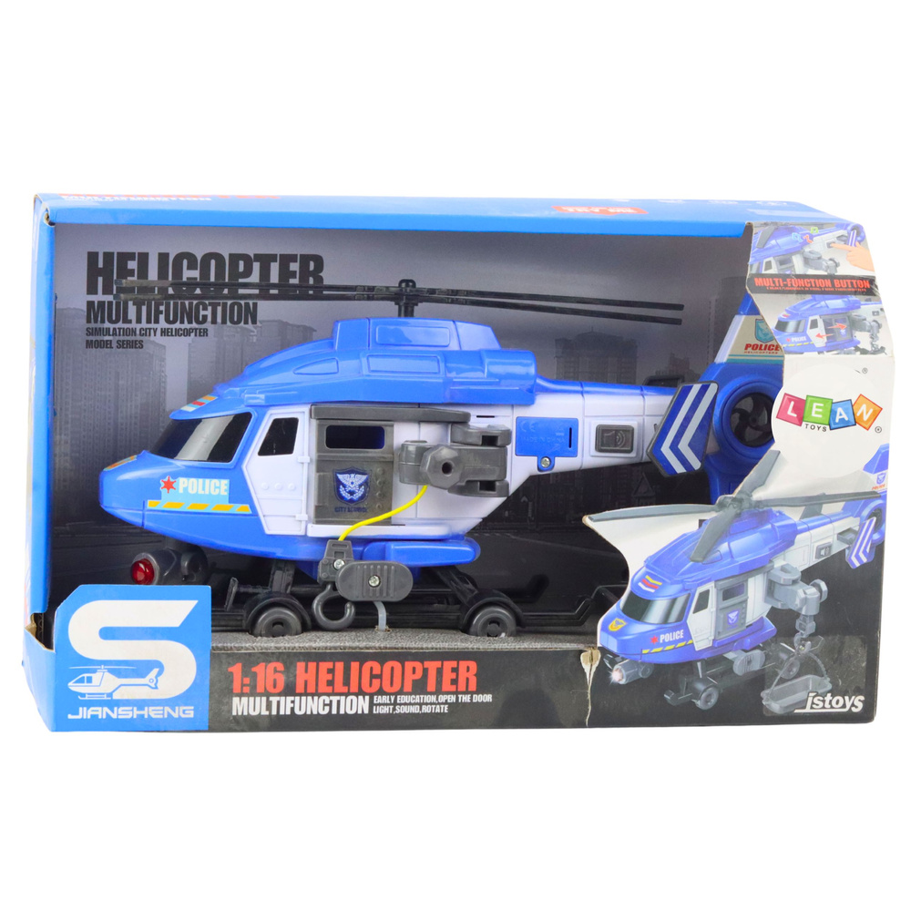 - This realistic 1:16 scale police helicopter is a unique toy that will delight every young aviation and emergency vehicle fan. The model is made of high-quality plastic, making it durable and safe to use.