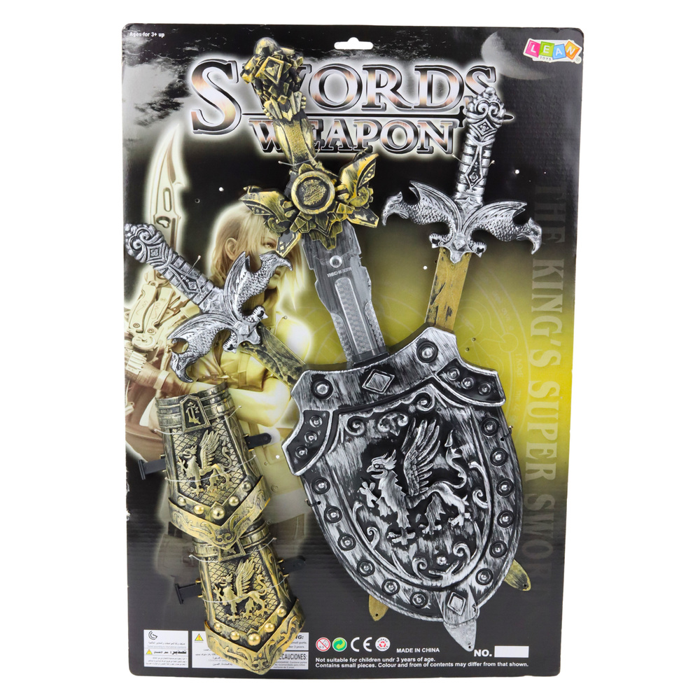 KNIGHT'S SET WITH SHIELD, 3 SWORDS AND PROTECTORS