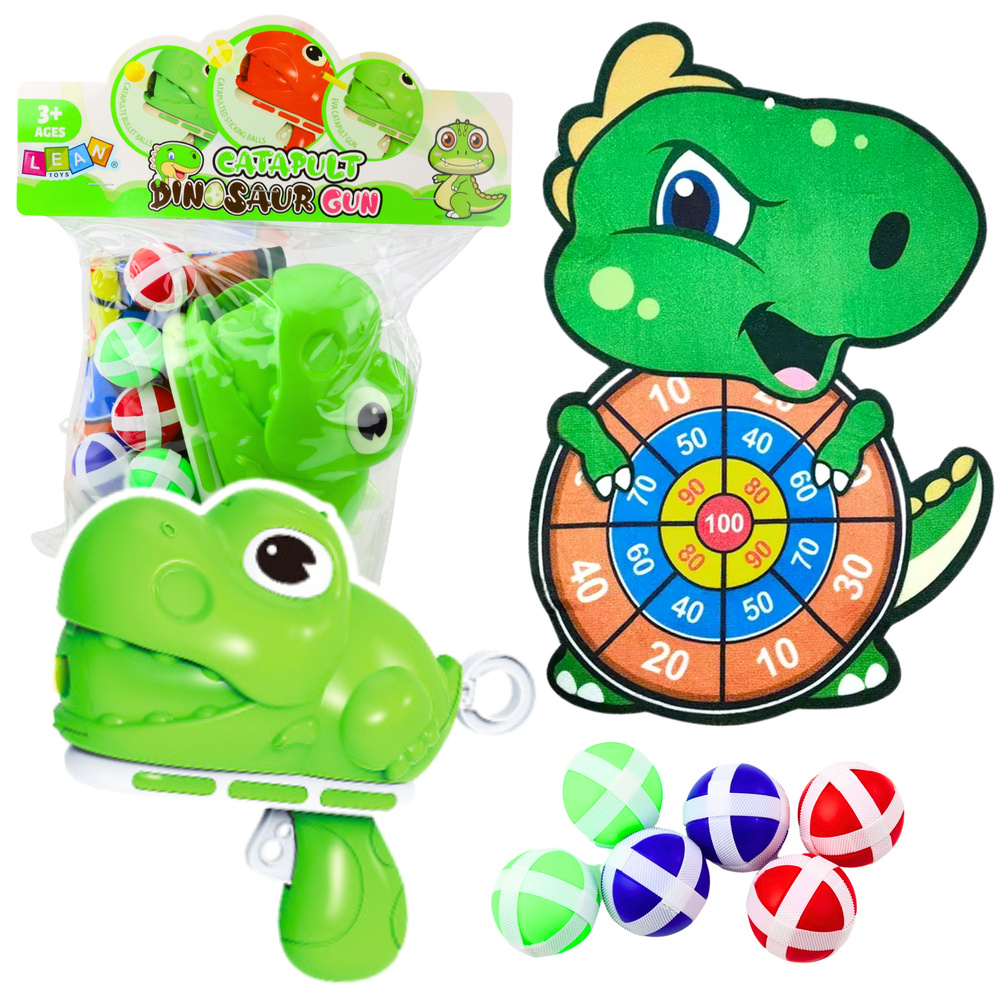 - The Dinosaur-themed Target Shooting Skill Game is a set consisting of a colorful board, a dinosaur-shaped gun and 6 soft balls. The game develops accuracy and coordination.
