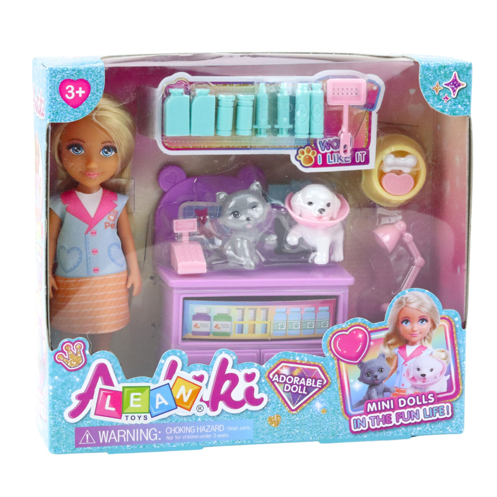 - The Mini Veterinarian Doll with Animal Care Kit is a toy that transports children into a world of care, nurturing, and responsibility. The 13 cm tall doll is depicted as a young veterinarian, dressed in professional attire.