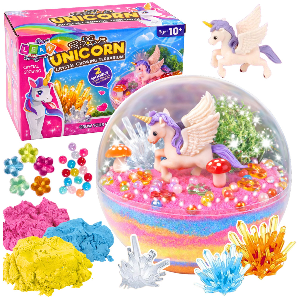 - Functions: crystal growing, DIY experiments, decorative unicorn terrarium