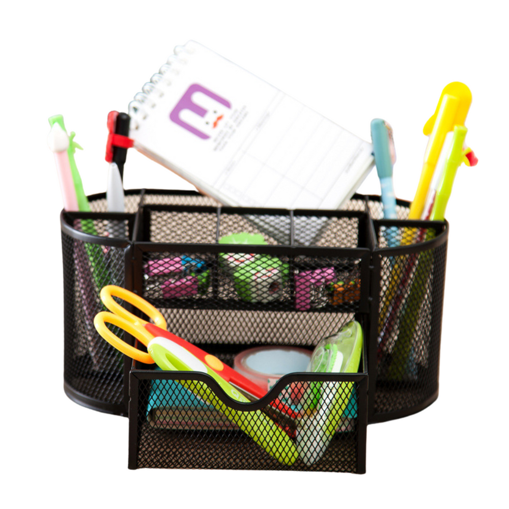 - This metal desk organizer is a practical and functional solution that helps keep your desk organized both at work and at home. The product was designed with convenient storage in mind.