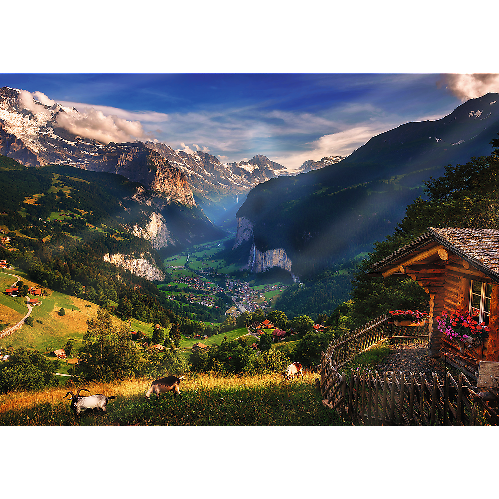 Puzzle Lauterbrunnen Valley, Switzerland shows an Alpine valley in the glow of the sun. After assembling them, an image measuring 683x480 mm will be created.