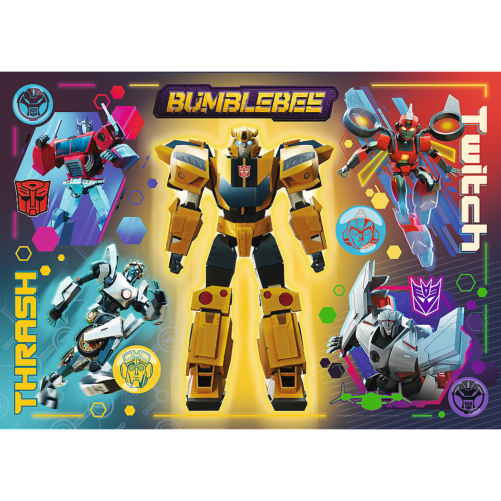 Transformers is a 200-piece puzzle featuring characters from the film Transformers EarthSpark. When assembled, a 48x34 cm image will be created. High quality, color saturation, and safe assembly are ensured by calendered paper that reflects light and the use of ecological materials.