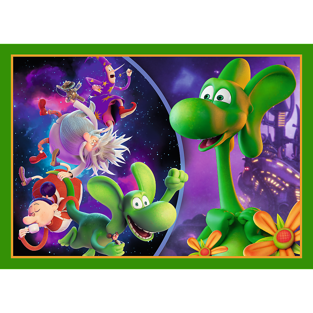 The World of the Diplodocus Dragon is 4 independent puzzles, designed for young fans of the adventures of the heroes of the Diplodocus Dragon cartoon. After arranging the puzzle, 4 pictures will be created, the largest of which is 285x205 mm. The varied number of elements allows both younger and slightly older children to play.