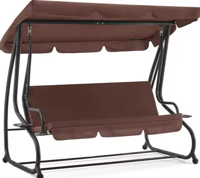 Four-person Garden Swing Rocking Chair Roof Freestanding Brown