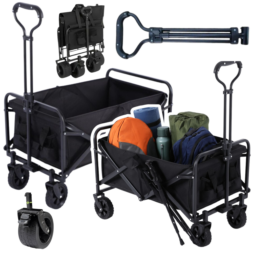 Foldable Garden Beach Transport Cart Black 120L