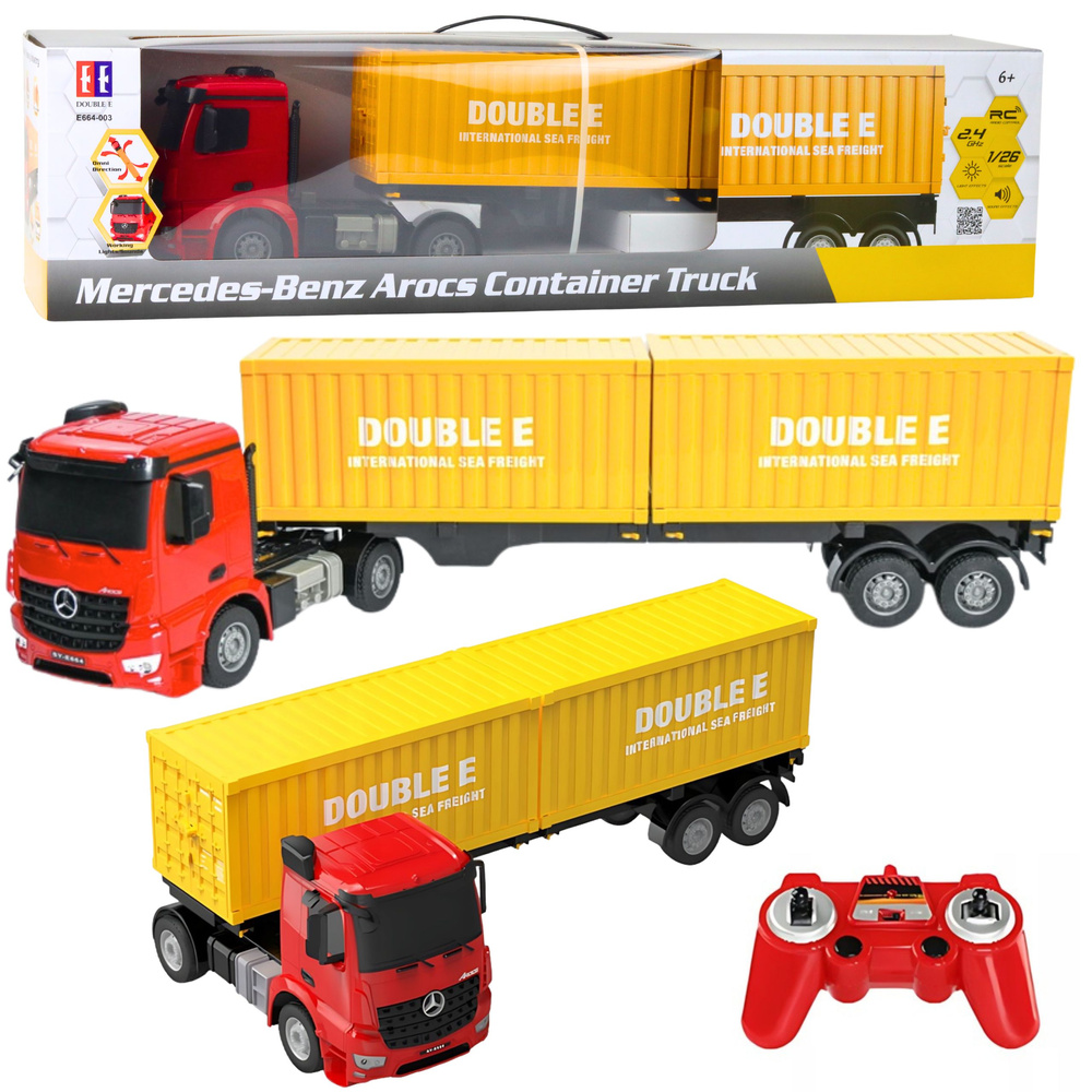 - The 1:26 scale remote-controlled Mercedes-Benz Arocs Container Truck is perfect for kids over 6 years old. Created by the renowned Double Eagle brand, this model combines realistic detailing