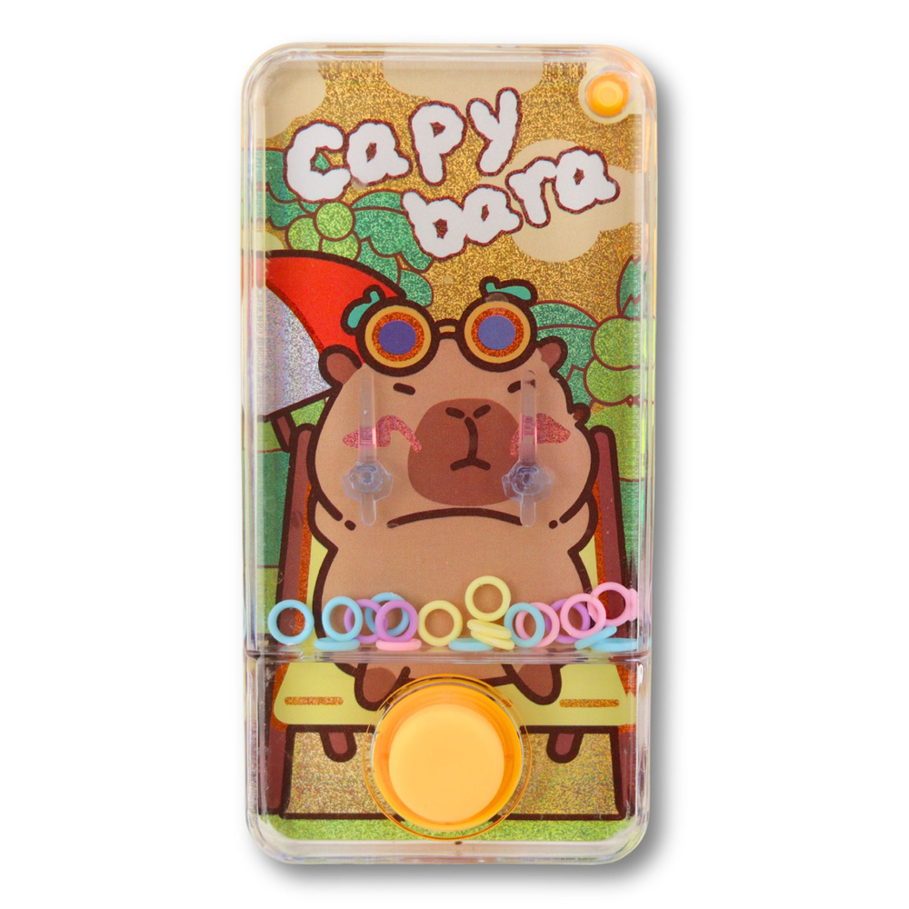 - The Capybara Water Game is a classic skill game that provides children with a lot of fun and develops precision skills. The game involves pressing buttons to make a stream of water lift small circles and land them on the corresponding cones.