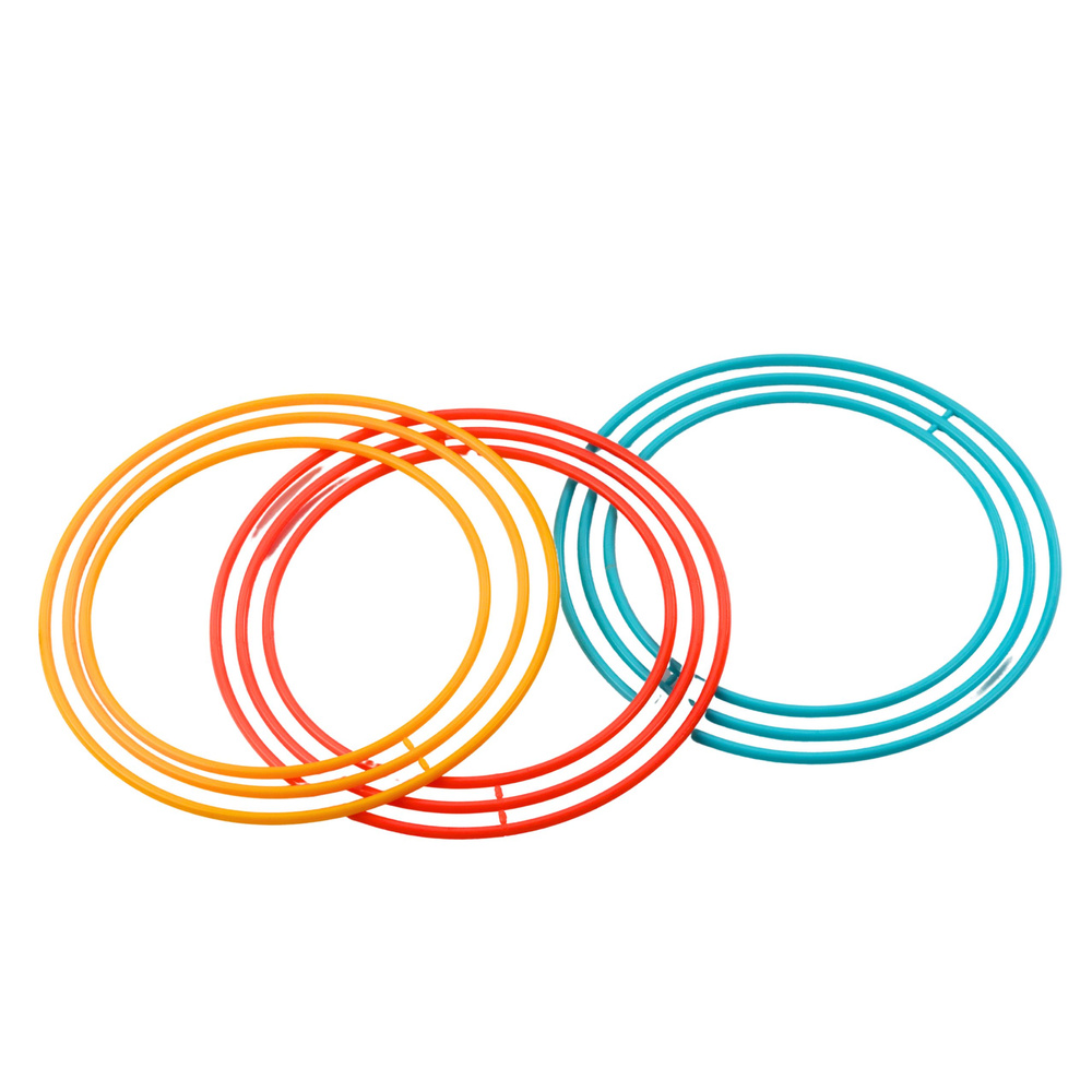 - 9 hoops (3 largest, 3 medium, 3 smallest)