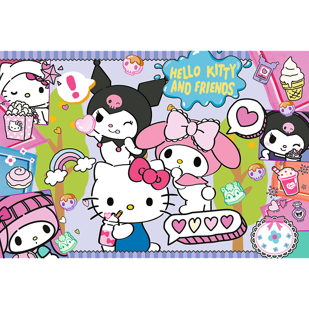 The Crazy Trio Hello Kitty puzzle consists of 300 pieces. Once assembled, the puzzle will create a 600x400 mm image.