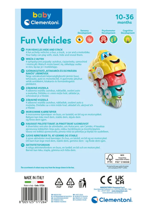 A set of 4 vehicles – bus, truck, car, and motorcycle – for endless fun and entertainment!