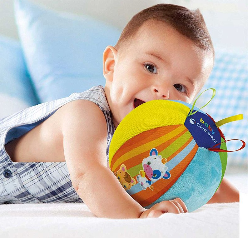 A soft musical ball with animal illustrations, made from gentle fabrics – perfect for safe indoor play.