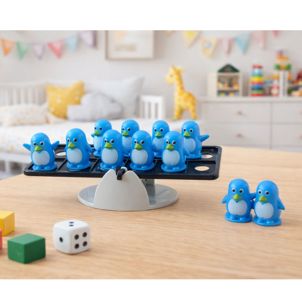 The colorful penguin figures capture children's attention, stimulate their imagination, and encourage creative, stable arrangement of elements. This game is perfect for independent play, as well as with family or peers, promoting learning through shared entertainment and healthy competition.
