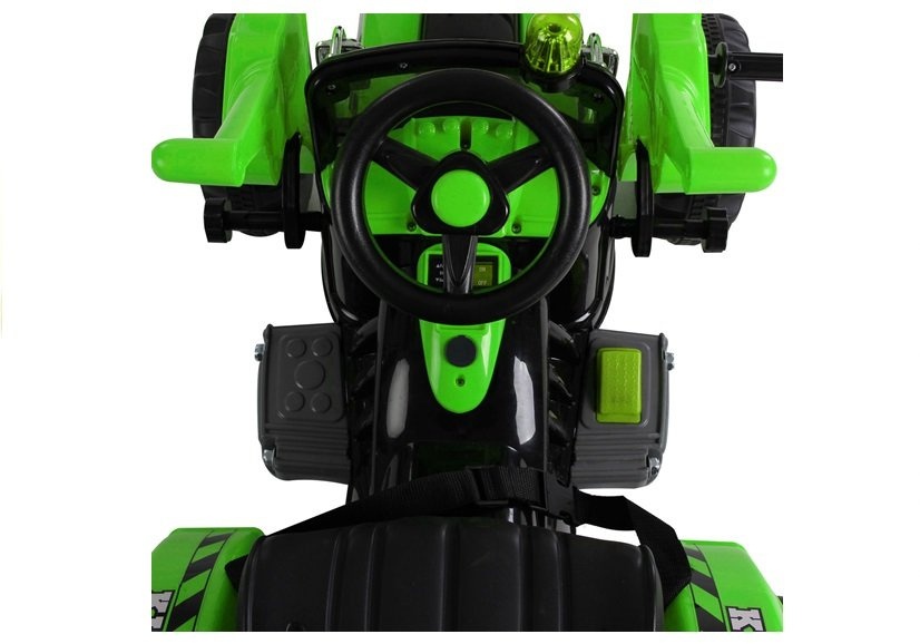 The presented tractor in a blue shade will certainly bring a smile to the child's face. After sitting comfortably on the driver's seat, the toddler can press the START button, select the direction of travel and speed with the switch - low or high, and then press the gas pedal with his foot. Watch out, the tractor starts moving forward! When your toddler plays, make sure that he fastens his seat belts and uses low speed - over time, change it to a higher one, so that the driver will feel even more fun.