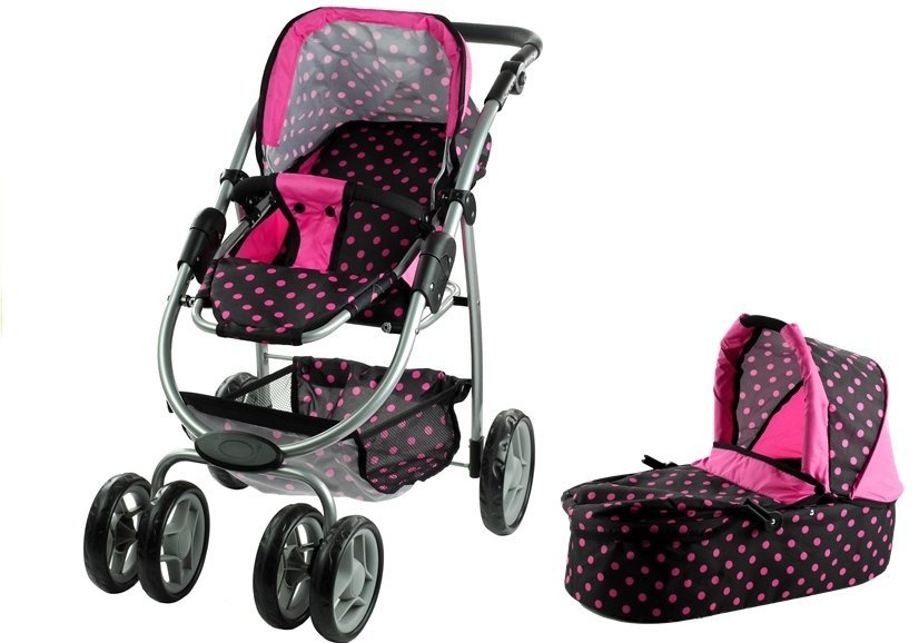 2in1 Doll Bogie and Stroller Alice -Black With Pink Dots