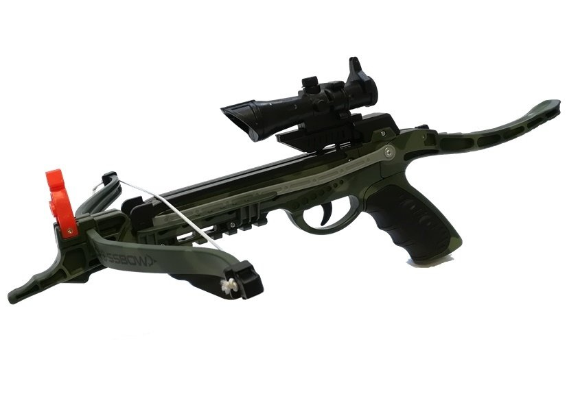 Zaawansowana konstrukcja naszej Kuszy sprawia, że inne wersje kuszy sklecone z dwóch kawałków drewna pójdą w odstawkę. Główny trzon broni wykonany jest z wysokiej jakości plastiku w kolorze ciemnozielonym - uzyskuje przez to wojskowy charakter. Kusza wyposażona jest w celownik optyczny, a także laserowy - po uruchomieniu czerwona kropeczka wskazuje miejsce, w które celujemy. Najciekawszą funkcją tej zabawkowej kuszy jest półautomatyczny naciąg. Twoje dziecko nie musi się już siłować próbując naciągnąć cięciwę - wykorzystując dźwignię umieszczoną w tylnej części korpusu kuszy linka zostanie automatycznie naciągnięta na gotową pozycję.