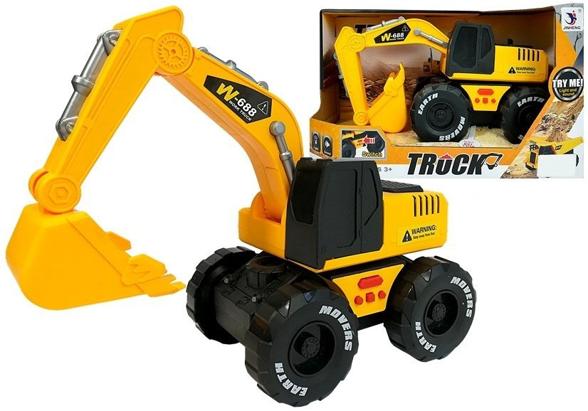 It is made of the highest quality plastic, which guarantees durability and safety during use. The yellow and black colors make the vehicle look realistic. The car moves with the help of a friction drive, just pull the cart back and enjoy the speed. There are 4 buttons at the bottom of the excavator, thanks to which the dump truck makes sounds of the horn, reversing and others. In addition, it has lighting effects, the lights in the front of the car shine. Fun at the construction site will be even more attractive! The bucket and the entire excavator arm can be moved, so you can collect things into the bucket and transport them to others.