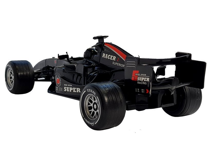 Wygląd auta jest jak z torów wyścigowych. Opływowy kształt i naklejki na bokach oraz lekka konstrukcja zabawki to tylko nieliczne z zalet produktu. Sprawiają, że wyścig urządzony z kolegami jest jedną z najlepszych zabaw. Wykonany w skali 1:12 pojazd jest imitacją prawdziwego modelu bolid z F1. Dzięki żywej kolorystyce i wiernemu oddaniu szczegółów, zabawa z tym samochodem, staje się jeszcze bardziej ciekawa. Miękkie, gumowe koła pojazdu gwarantują dużą przyczepność auta do podłoża. Aby uruchomić pojazd należy nacisnąć na głowę naszego kierowcy, po bokach bolidu są ulokowane diody ze światłami. Model posiada także efekty dźwiękowe.