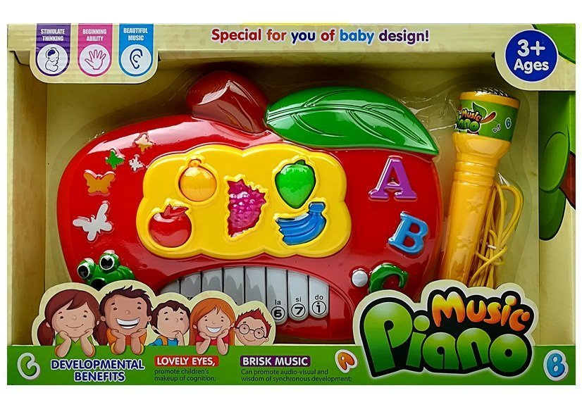 The piano is intended for children over 3 years old. The toy is CE certified and complies with the EN 71 standard. It is packed in a cardboard box with a transparent window, making it suitable as a gift for a child.