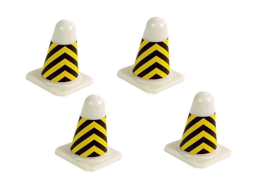 Wszystkie mniejsze elementy, pojazdy mają wymiary około 6 cm x 3 cm x 2 cm. Wykonane są plastiku z metalowymi częściami.