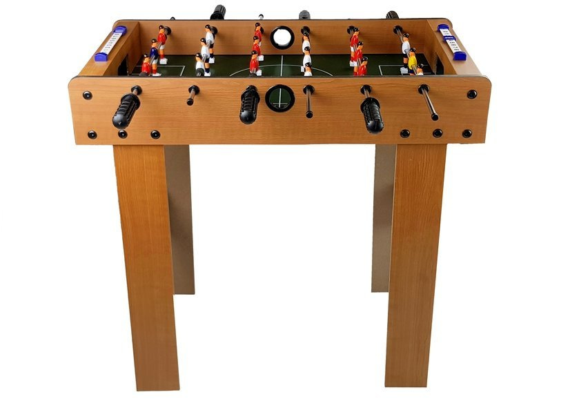 Drewniane trybuny zabezpieczają boisko i nie ma możliwości aby piłka wypadła z boiska. Tuż za bramkarzami znajdują się otwory na piłeczki, gdzie trafiają strzelone gole. W konstrukcji zabawkowego boiska do gry umieszczono dwa liczniki goli do przesuwania. Po każdej ze stron znajduje się podziałka z liczbami od 1 do 10, co ułatwi kontrolę wyników w trakcie starcia.