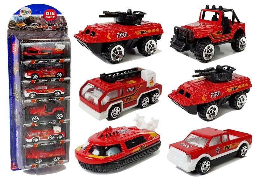 The cars have been made on a scale of 1: 64, and are all perfectly reproduced in an intense red colour with fire brigade stickers. The types of cars show that their real-life counterparts can drive on any terrain whether mud or water. The set includes 6 vehicles including a motorboat, a fire engine and a jeep. Many types of vehicles and many possibilities. The multitude of play variants using the set of small cars is sure to make your child's imagination soar. The body and underside of the toy is made of plastic.