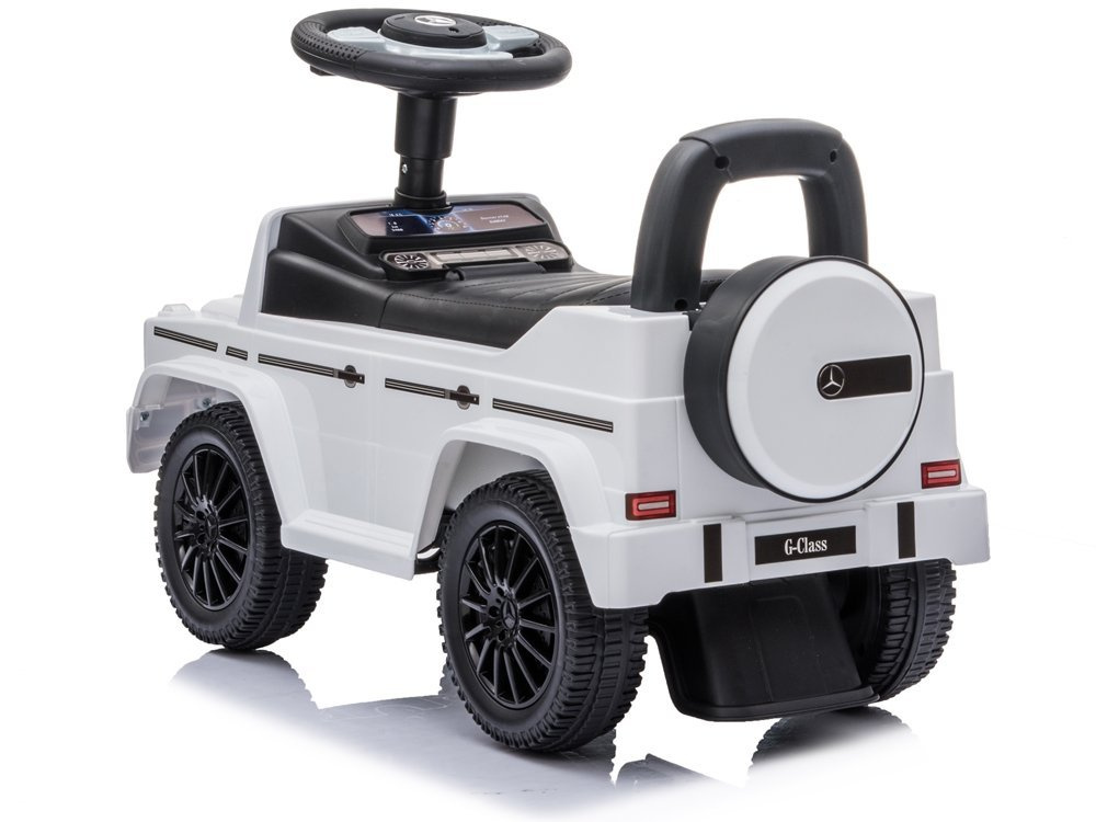 The Mercedes 652 ride-on has a leather seat that ensures comfort while driving. The whole thing has a very realistic design. The rims, headlights and grills are very well made down to the smallest detail. The backrest protects the child from tipping backwards. The ride-on vehicle moves forward, backward and has a torsional front wheels.