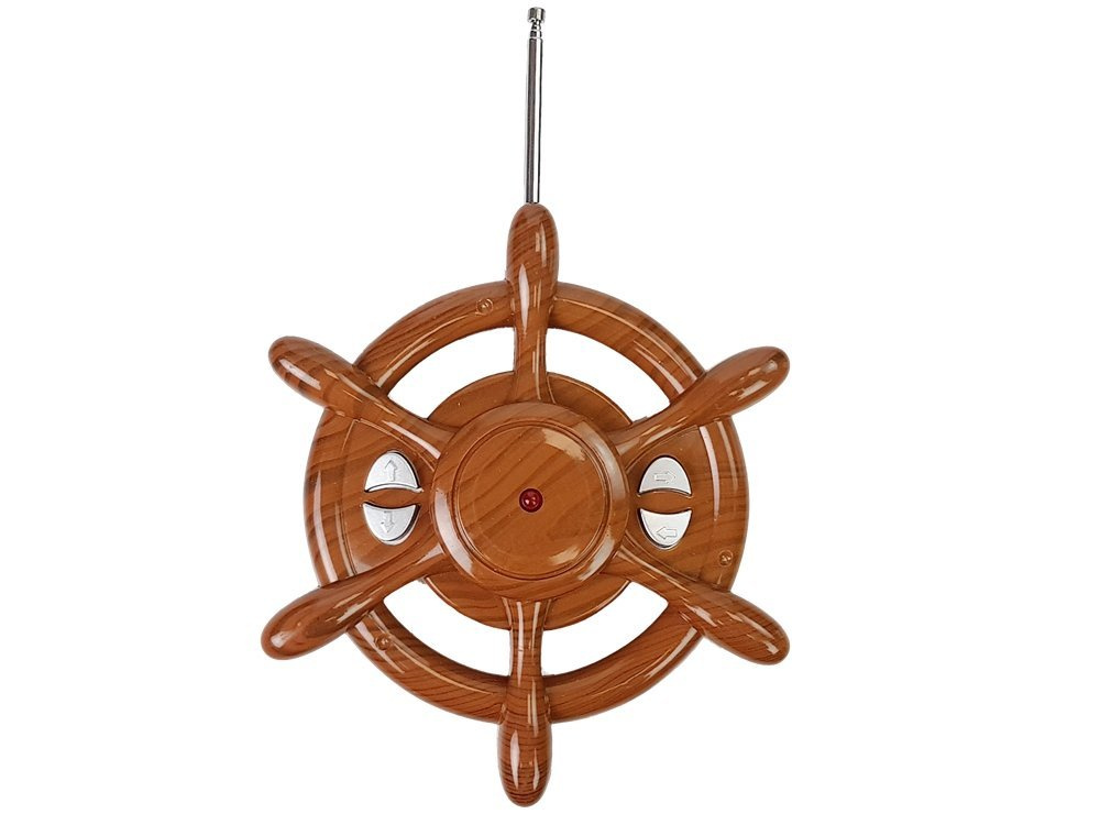 The boat is equipped with two efficient engines that allow you to move forward and backward, as well as make dynamic turns. The rudder-shaped remote control adds realism and engages the child in the game even more. The controller operates at a frequency of 27 MHz, and the included antenna amplifies the signal, allowing for full control of the boat even at greater distances.