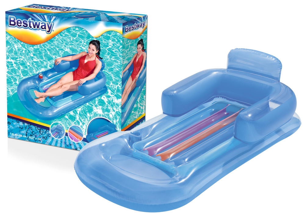 A very comfortable and practical mattress will be useful to all lovers of both water and spending time on the beach. The mattress can be used both as a classic swimming and sunbathing mattress. An additional advantage that will provide you with comfort and relaxation are the armrests and an inflatable backrest. Classic blue color in combination with rainbow elements will surely appeal to you. The mattress also includes a drink hole so you don't have to leave the water to drink your favorite drink.