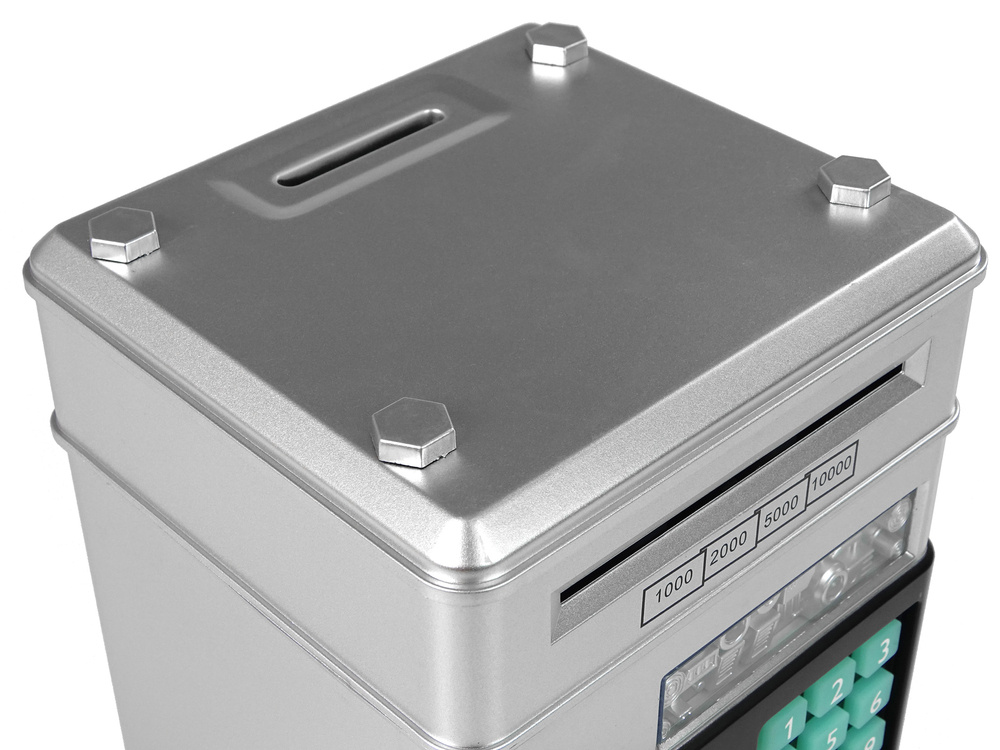 The moneybox safe is a great and elaborate toy for children. It will help count coins, use an ATM card, set deposits and withdrawals, and allows you to enter a savings goal. It will control all withdrawals or you can use it while playing with your peers in the shop.