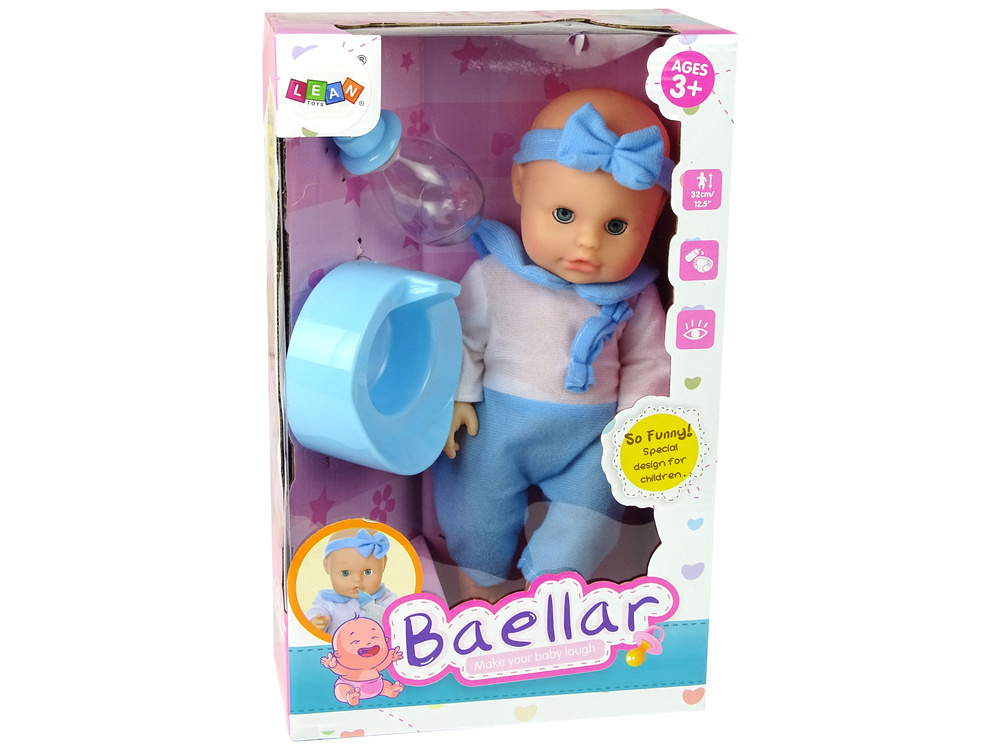 Das Set enthält eine Flasche und ein Töpfchen. Die Puppe kann trinken und pinkeln wie ein echtes Baby.