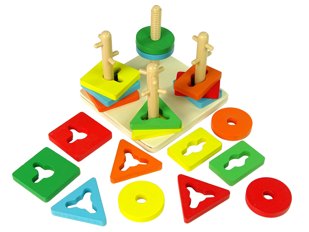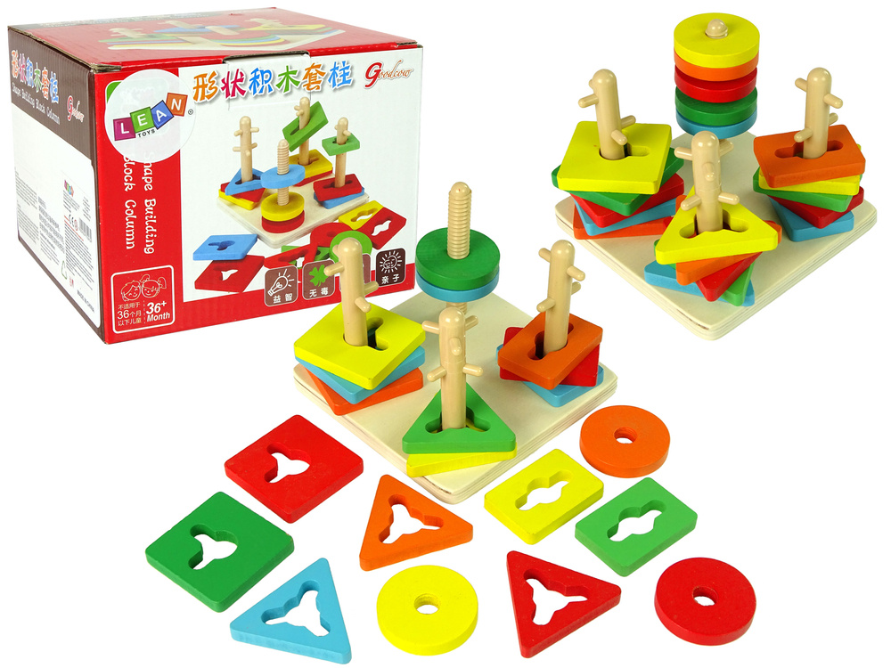 Das Set besteht aus einer quadratischen Basis mit unterschiedlich geformten Türmen und 20 bunten Bausteinen. Der Spielspaß besteht darin, den Turm mit den passenden Bausteinen zusammenzustellen. Die größte Herausforderung besteht darin, die richtige Form zu finden. Das Kleinkind trainiert räumliches Vorstellungsvermögen, Präzision und handwerkliches Geschick.