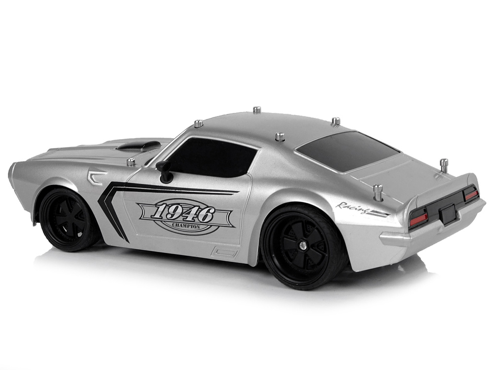 Das Auto hat eine leichte und robuste Konstruktion, ein sportliches Design mit schwarzen Fenstern und schwarzen Details auf der Motorhaube und den Aufklebern von 1946 Champion. Die Gummireifen garantieren beim Lenken einen guten Halt auf dem Boden. Das Lenken des Fahrzeugs macht vor allem den Jüngsten großen Spaß. Mit der im Set enthaltenen Fernsteuerung können Sie das kleine Automodell lenken, hat zwei separate Tasten für Vorwärts-/Rückwärts- und Seitwärtsfahrt.