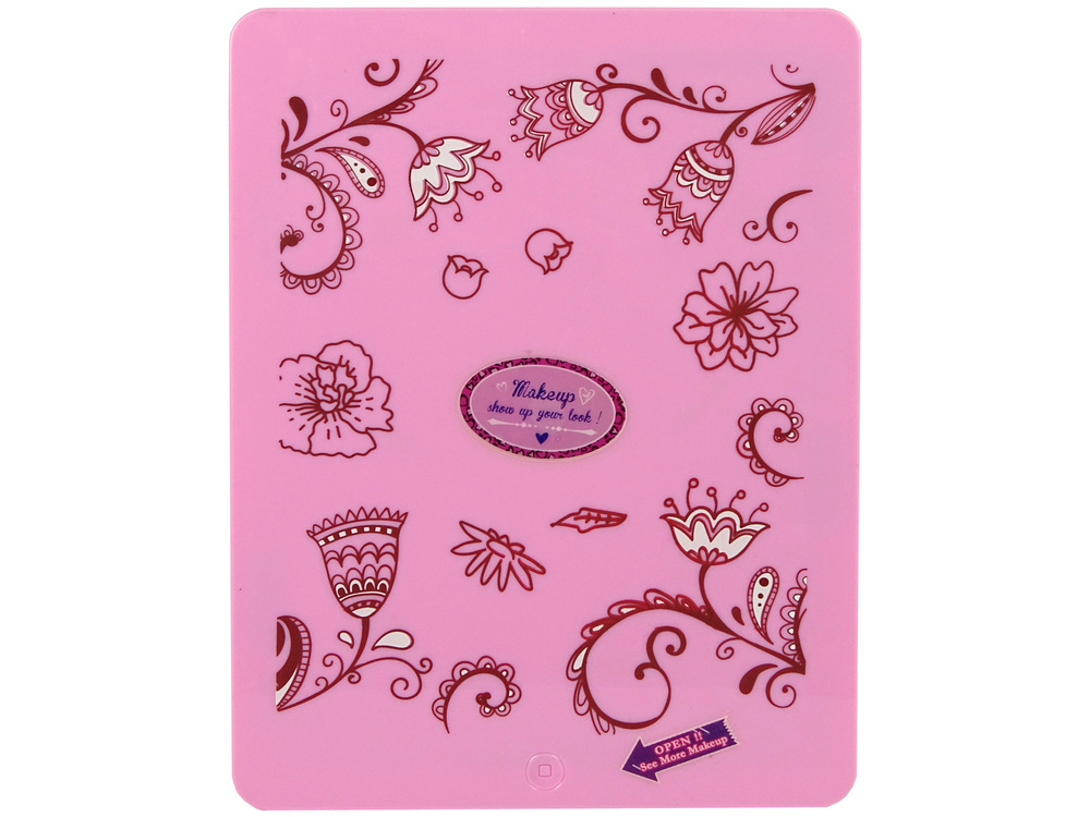 Die wunderbar aufklappbare Schminkpalette birgt beim Öffnen viele Schätze. Einmal geöffnet, kommen im Inneren Glitzerlidschatten und Rouge, Lipgloss und Lippenstifte zum Vorschein. Auf dem Deckel befindet sich ein Spiegel, in dem sich ein kleines Mädchen präzise schminken und das Aussehen des Make-ups überprüfen kann.