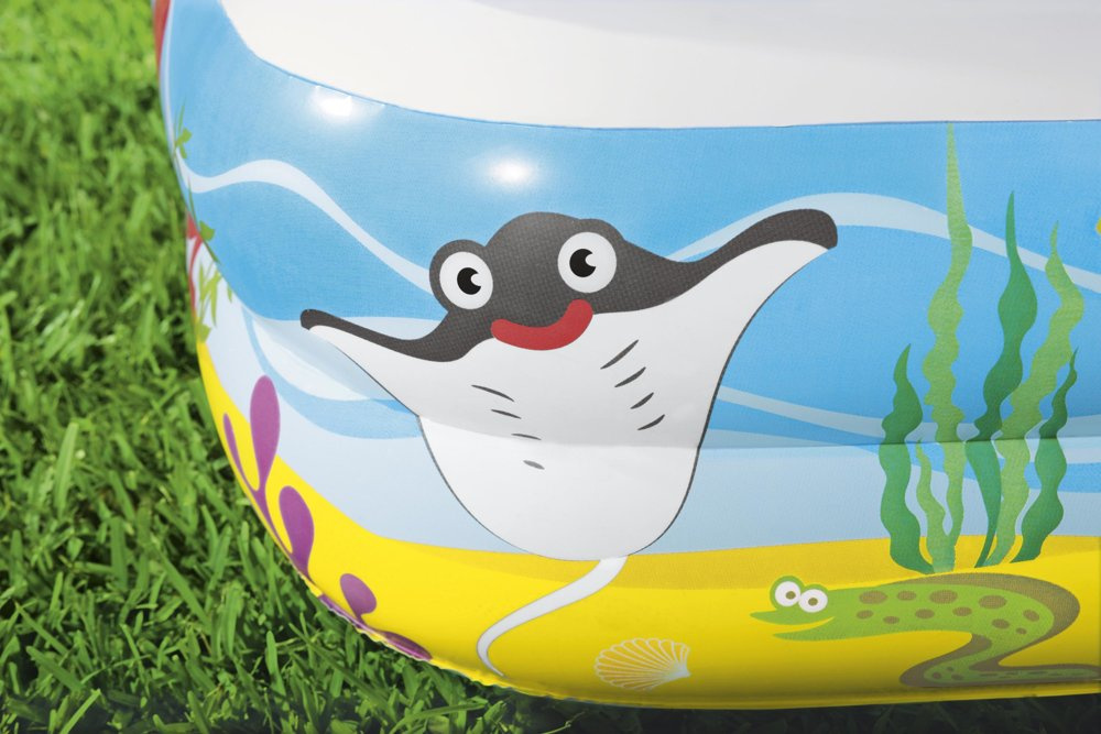 Der aufblasbare Pool wurde entwickelt, um Kinder zu ermutigen, sich zu bewegen und im Freien Spaß zu haben. Dank seiner geringen Abmessungen ist es ideal für Kinder ab 2 Jahren. Es lässt sich leicht aufblasen und entleeren, sodass es kein Problem darstellt, es zu verstauen. Weiche, niedrige und aufblasbare Wände sorgen für Komfort und Sicherheit für die Kleinen. Aus strapazierfähigem Vinyl gefertigt, ist es widerstandsfähig gegen Beschädigungen. Das im Set enthaltene aufblasbare Verdeck bietet Ihren Kindern Sonnenschutz. Das Dach wird mit speziellen Saugnäpfen am Beckenrand befestigt und kann bei Nichtgebrauch auch einfach wieder abgenommen werden.