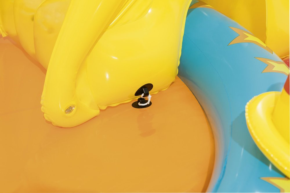 Möchten Sie Ihrem Kind einen unvergesslichen Spaß in der Privatsphäre Ihres Gartens bieten? Der aufblasbare Spielplatz verwandelt ihn in ein echtes Unterhaltungszentrum für Ihr Kind. Das Schwimmbad mit aufblasbaren Attraktionen wie einer aufblasbaren Rutsche, Wasserfontäne, Bowling wird Ihren Kleinen sicherlich begeistern und zu seinem Lieblingsspielplatz werden. Der Pool besteht aus einem weichen, aber strapazierfähigen Material und ist für die Kleinsten so sicher wie möglich. Die Hauptattraktionen sind eine aufblasbare Rutsche und ein Ball, aus dem Wasser fließt, wenn er an einen Gartenschlauch angeschlossen wird. Mehrere Kinder können den Spielplatz gleichzeitig nutzen, dank zahlreicher Attraktionen findet jeder etwas für sich.
