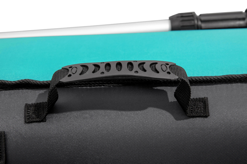 Ein Ausflug ans Wasser ist eine ideale Form der Freizeitgestaltung. Um diese unbeschwerte Zeit abwechslungsreicher zu gestalten, statten Sie sich mit zusätzlichem Poolzubehör aus. Das Kajak eignet sich auch perfekt für einen Freizeitausflug auf dem See oder im Schwimmbad. Es wurde aus strapazierfähigem, beschädigungsresistentem Vinyl hergestellt. Der Stoff ist ölbeständig, wasserabweisend und widersteht intensiver UV-Strahlung. Die hochwertige Nylonhülle ist außerdem durchstoßfest und so konstruiert, dass sie dem rauen und oft felsigen Flusswasser standhält. Sie werden in der Lage sein, durch gewundene Flüsse, Seen, ruhige offene Gewässer oder die Ebbe und Flut von Wellen zu manövrieren. Entworfen mit verstellbaren Rückenlehnen für Komfort und Unterstützung. Zusätzlich zu einem Staufach in der Struktur des Bootes gibt es auch eine abnehmbare Aufbewahrungstasche, die es Ihnen ermöglicht, auf Ihre wichtigsten Dinge zuzugreifen, während Sie durch das Wasser paddeln. Die Double Blade Paddles sind aus Aluminium, leicht und werden gleichmäßig mit sicheren Riegeln gehalten. Voll aufgepumpt mit einer Handpumpe ist das Kajak 2,80 m lang und bis zu 130 kg belastbar. Es hat auf jeder Seite solide Segeltuchgriffe, die das Tragen des Kajaks zum Kinderspiel machen. Das Kajak hat abnehmbare Flossen, um die Richtungsstabilität zu erhalten und die Geschwindigkeit zu erhöhen. Zur Aufbewahrung nehmen Sie einfach die Flossen vom Kajak ab, um eine ultrakompakte, platzsparende Komponente zu erhalten.