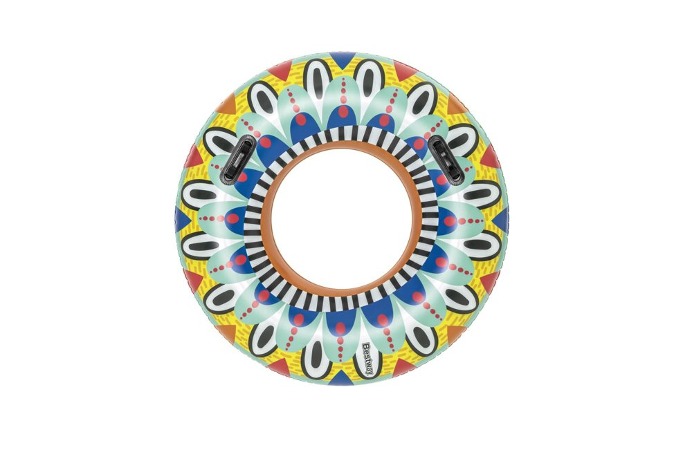 Wenn Sie ins Wasser gehen, lohnt es sich, alle notwendigen Poolzubehörteile mitzunehmen. Eine großartige Ergänzung zur Entspannung und zum Spaß im Wasser ist auch ein aufblasbares Schwimmrad. Das Laufrad ist für Kinder ab 12 Jahren und alle Erwachsenen bestimmt. Sein Durchmesser beträgt 107 cm. Das Rad ist komfortabel und bleibt stabil auf dem Wasser. Es besteht aus strapazierfähigem PVC-Material, das gegen Beschädigungen und Sonnenlicht beständig ist.