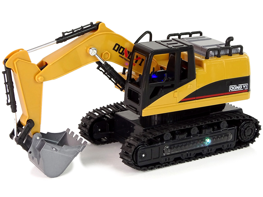 Das Fahrzeug verfügt über einen Gummiraupenantrieb, der auf einer echten Baustelle mit den unterschiedlichsten Oberflächen zurechtkommt - nicht nur mit völlig glatten. Die Fernbedienung hat eine Frequenz von 2,4 Ghz.