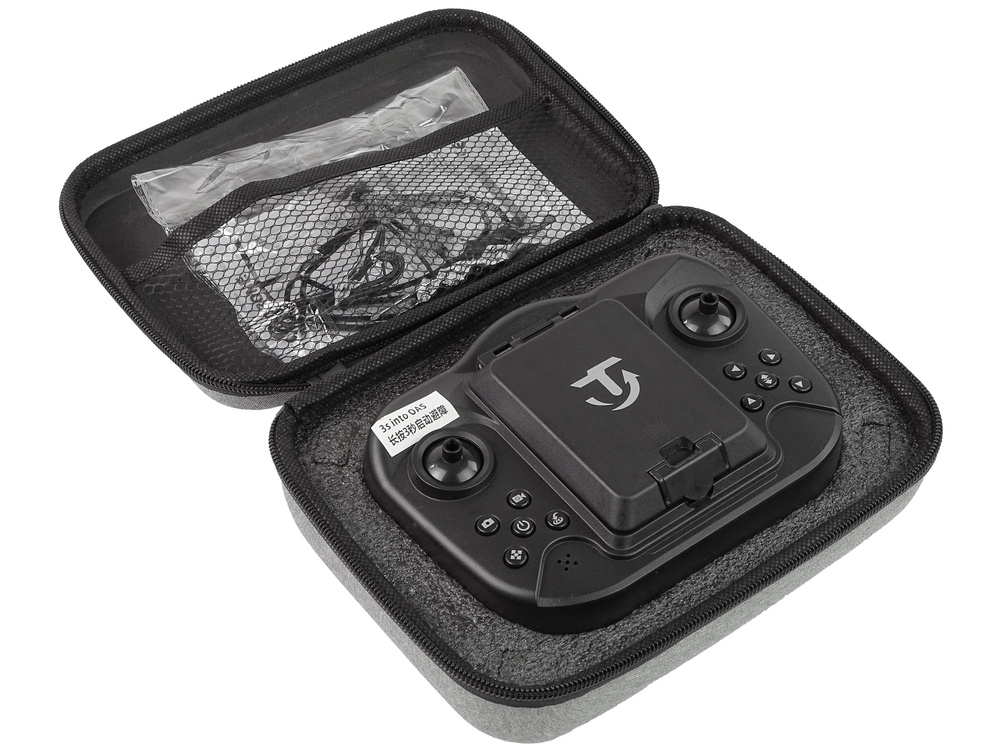 Sie steuern die Drohne mit der Fernbedienung, die eine freie Bedienung des Geräts während des Fluges garantiert. Die Steuerfrequenz beträgt 2,4 GHz.