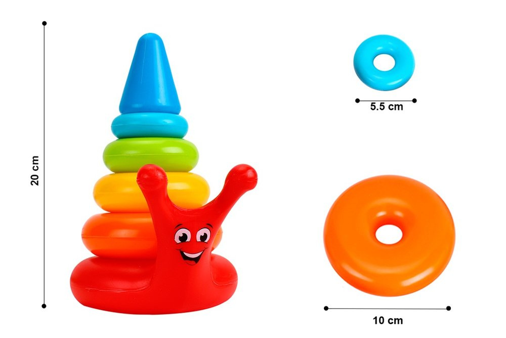 Eine fröhliche Pyramide in den Farben des Regenbogens ist ein Spielzeug, das die Entwicklung des Babys perfekt beeinflusst. Es besteht aus einem Rand in verschiedenen Farben und Größen. An der Spitze des Spielzeugs befindet sich ein Kegel, der die Pyramide schließt. Die Basis ist schneckenförmig - mit schönen Ohren, einem Schwanz und einem strahlenden Lächeln. Das Spielzeug besteht aus sicherem, ungiftigem Material, das solide und langlebig ist. Die Pyramide hat eine sehr stromlinienförmige, abgerundete Form, was sich auf das Sicherheitsniveau bei der Verwendung des Objekts auswirkt.