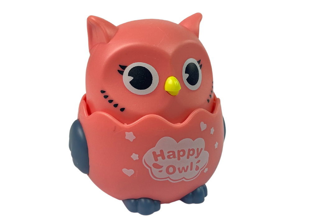 Die Figur stellt eine niedliche rosa Eule mit blauen Flügeln dar. Drücken Sie die Eule auf den Boden, lassen Sie sie los und beobachten Sie, wie sie vorwärts saust. Sie bewegt sich mühelos über ebene Flächen und bleibt an Hindernissen stehen. Ihr Kind wird es kaum erwarten können, die Eule einzuholen und ihre ersten Schritte zu machen.