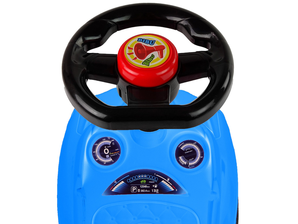 Der Ride-On ist ein multifunktionales Spielzeug für Ihr Kleinkind. Es ist für ein Kind gedacht, das sich mit den Füßen selbstständig vom Boden abstoßen kann. Das Spielzeugauto wächst mit Ihrem Kind und seinen Fähigkeiten. Das Schiebespielzeug eignet sich sowohl für zu Hause als auch für den Hinterhof oder Garten. Die Verwendung des vorgestellten Fahrzeugs für Mehrjährige im täglichen Spiel hat einen großen Einfluss auf ihre Entwicklung. Der Wagen fördert gleichzeitig die Koordination vieler Körperteile des Kindes, entwickelt die Muskulatur und unterstützt nicht zuletzt das Erlernen des selbstständigen, stabilen Gehens. Das Fahren mit dem blauen Schiebeauto hilft Ihrem Kind zu verstehen, was Geschwindigkeit, Entfernung oder Richtung bedeutet.
