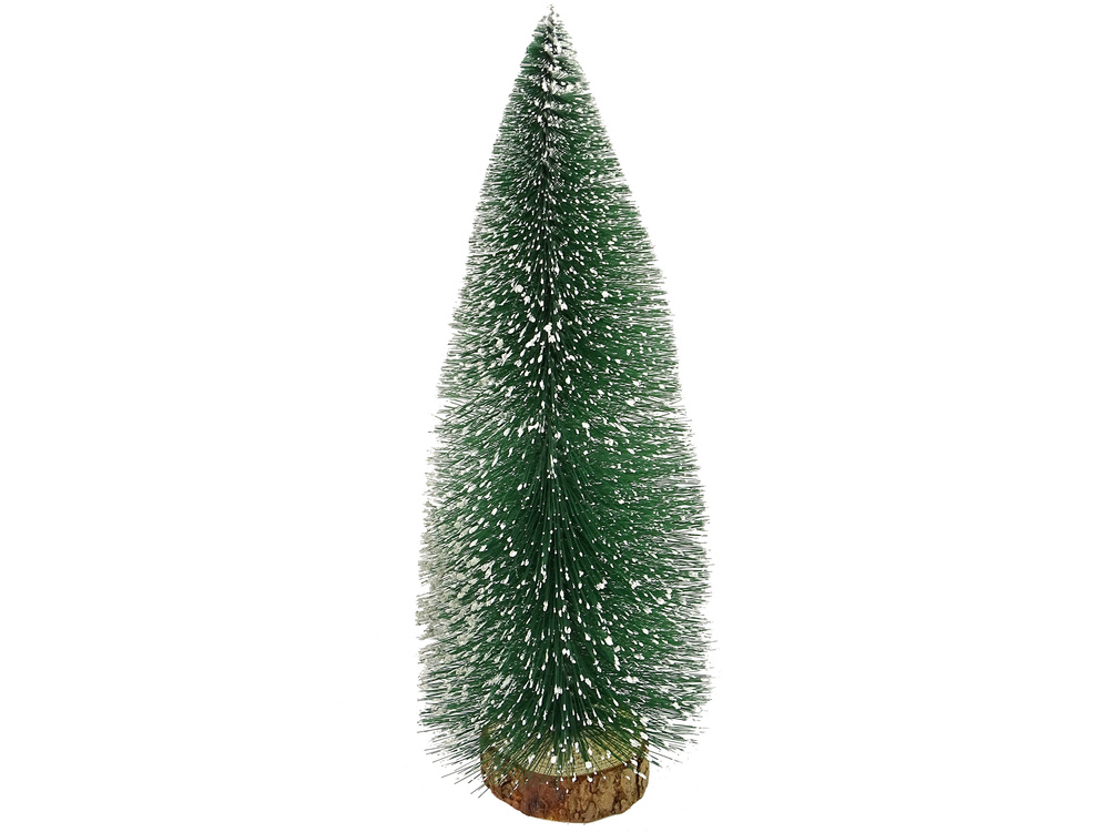 Der dekorative Weihnachtsbaum ist in Grüntönen gehalten und die Nadeln sind mit kleinen Schneeflocken bedeckt. Der Sockel ist ein nachgeahmter Baumstamm. Die Lichter tragen zur festlichen Stimmung bei und verstärken den Effekt bei Nacht. Die richtige Größe und die schlanke Form schmücken jeden Raum.