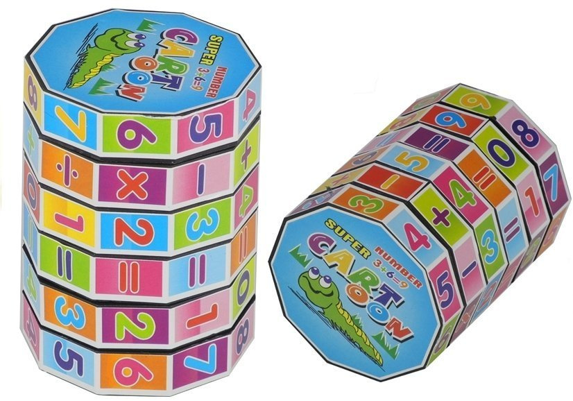 Barwny walec przyciągnie uwagę każdego kilkulatka, zachęcając go do przekręcania bloków, by w efekcie móc rozwiązywać nieskomplikowane działania matematyczne. Prezentowany walec to zabawka logiczna, która stymuluje umysł dziecka, rozwijając jego zdolności matematyczne i chęć do nauki, równocześnie sprawiając frajdę.