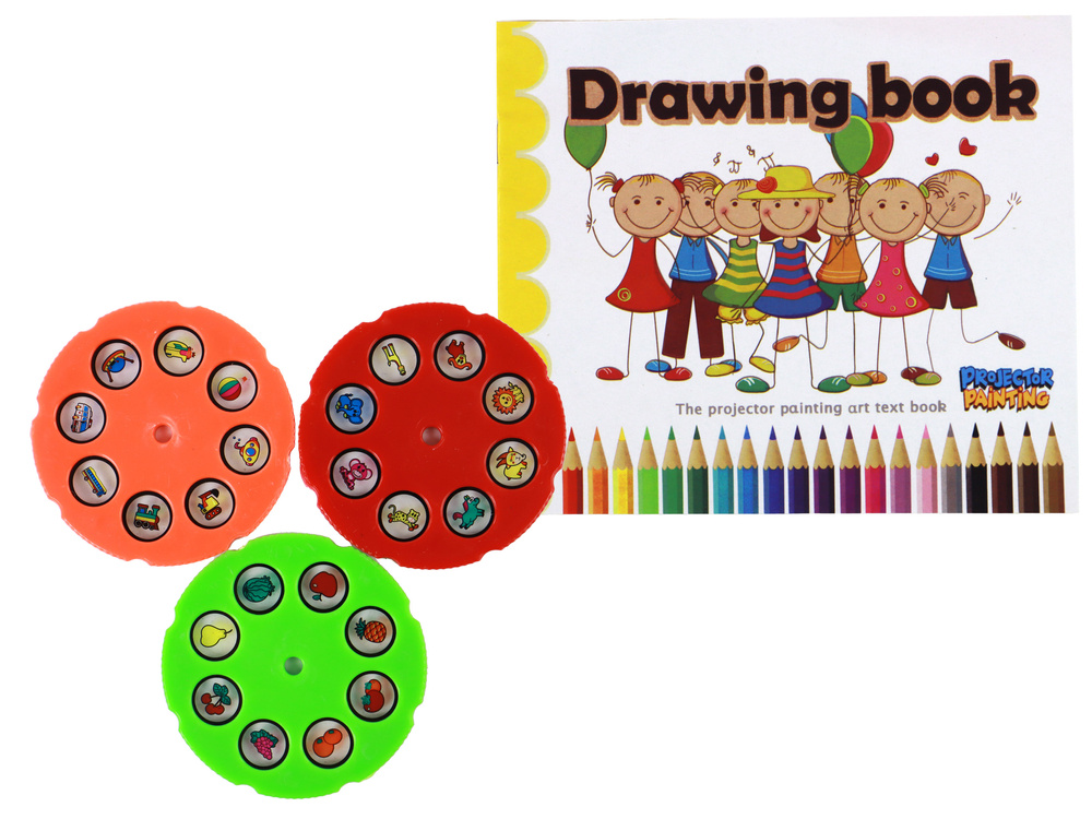 Mit dem Projektor kann das Kind Bilder aus den beigefügten 24 Mustern kopieren, spielerisch ungewöhnliche Dekorationen und Hintergründe erstellen und vor allem eigene, originelle Werke schaffen. Wenn der Projektor eingeschaltet wird, schaltet sich das Licht ein, wenn die Disc eingelegt wird, werden die Dias angezeigt. Wir haben bis zu 24 schöne, farbenfrohe Bilder zum Zeichnen, wie Tiere, Fahrzeuge, Gemüse oder Obst. Auf der Basis können Sie direkt mit Markern malen, die Zeichnungen mit einem Tuch löschen, das ebenfalls im Set enthalten ist. Sie können den Projektor auch auf die Wand richten und Dias an die Wand projizieren. Der Projektor kann auch als Lampe fungieren.